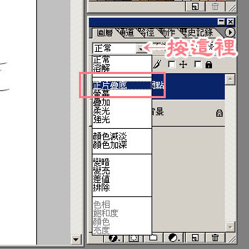 接著要改變《網點》圖層的模式,按下小三角形,選擇《正片疊底》。