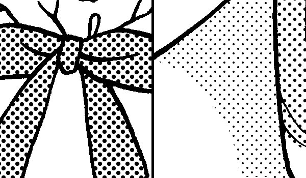 接著要貼蝴蝶結的網點。由於蝴蝶結是"封閉式的線條",可以配合封閉式線條的貼網方式。